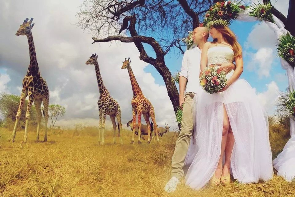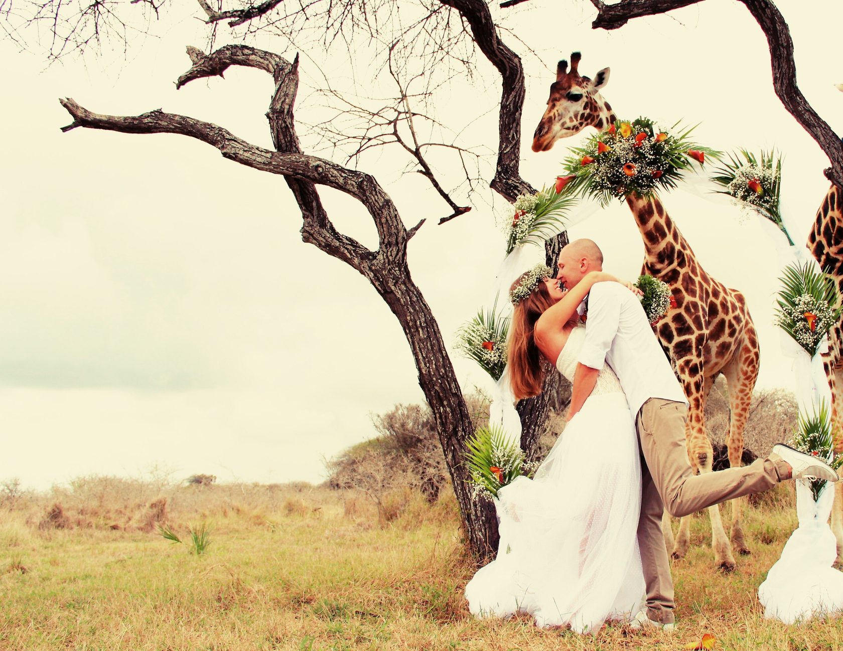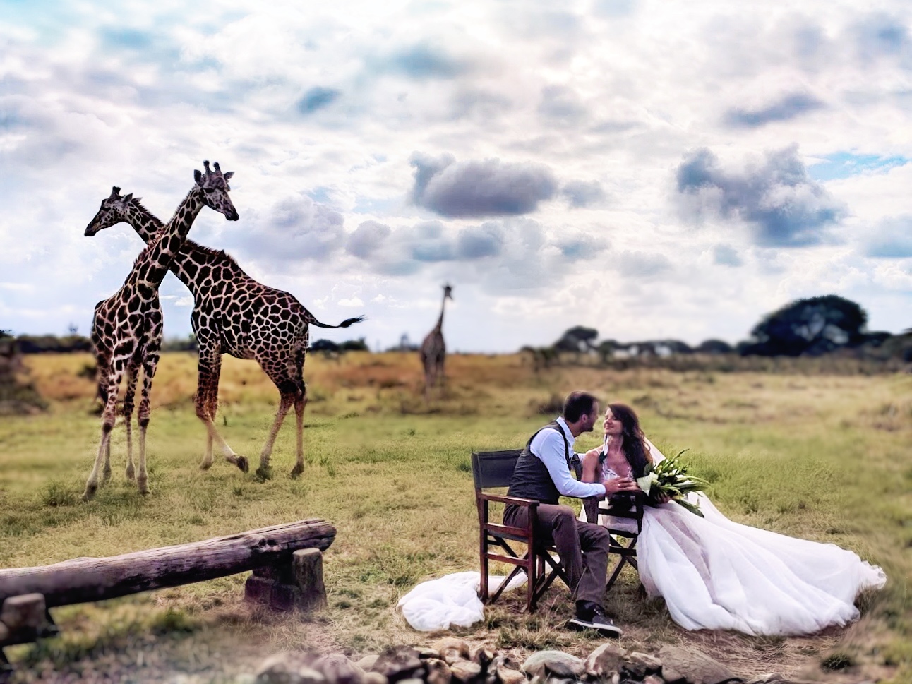 You know, it takes a lot to really wow people these days. But a wedding smack-bang in the middle of the scorching savanna, with the raw beauty of the African continent as your backdrop? That’ll knock their socks off. I mean, picture this: giraffes gracefully strolling by, mighty elephants lumbering in the distance, and regal lions holding court – all part of your guest list! A hot-air balloon ride over the endless plains, breathtaking helicopter flips, elegant pink flamingos dotting the landscape, those long-necked giraffes practically within arm’s reach, and majestic snow-capped mountain peaks in the distance. All the sheer beauty and poetry of Africa, etched in your memory forever and captured in some seriously stunning wedding photos. Your guests? They’ll never forget this adventure, reminiscing about your unique wedding with nothing but gratitude and awe.