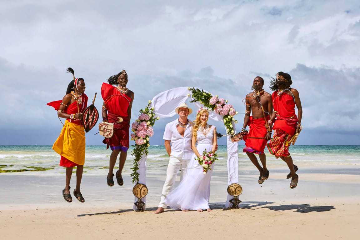 To really dial up the local flavor at your wedding bash, imagine the Morans – the legendary Maasai warriors – making an appearance. Their traditional, brightly colored attire and iconic accessories always steal the show, and their movements are just mesmerizing. Picture a warrior holding a ceremonial rungu (club) or a spear, draped in a lion’s skin or a striking dashiki, topped off with vibrant ethnic bead work or an Afro-chic necklace that would make Valentino models green with envy. But a wedding in Africa isn’t just about the unparalleled atmosphere; it’s also about top-tier service. We’re talking swanky lodges with impeccable hospitality, world-class cuisine whipped up by renowned chefs, blissful spa treatments, and an all-around experience of beauty and comfort.
