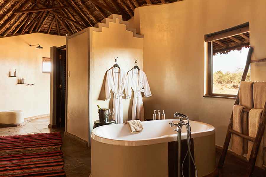 Nestled between Tsavo and Amboseli National Park, Ol Donyo Lodge sits in the heart of the Chyulu Hills. Explore 275,000 acres of untamed Africa on the Mbirikani Group Ranch, bordering Chyulu Hills National Park. The lodge itself is built from volcanic tuff, formed by Kilimanjaro’s eruptions 360,000 years ago. Each room offers a window into East Africa’s soul, with views of a private stone-terraced plunge pool illuminated at night, rolling valleys, and Mount Kilimanjaro. And in all seven suites, you have the option to sleep beneath a canopy of stars on a secluded “star bed” atop your chalet’s roof, listening to the sounds of hyenas and lions on the prowl, elephants rumbling, and the symphony of birdsong.