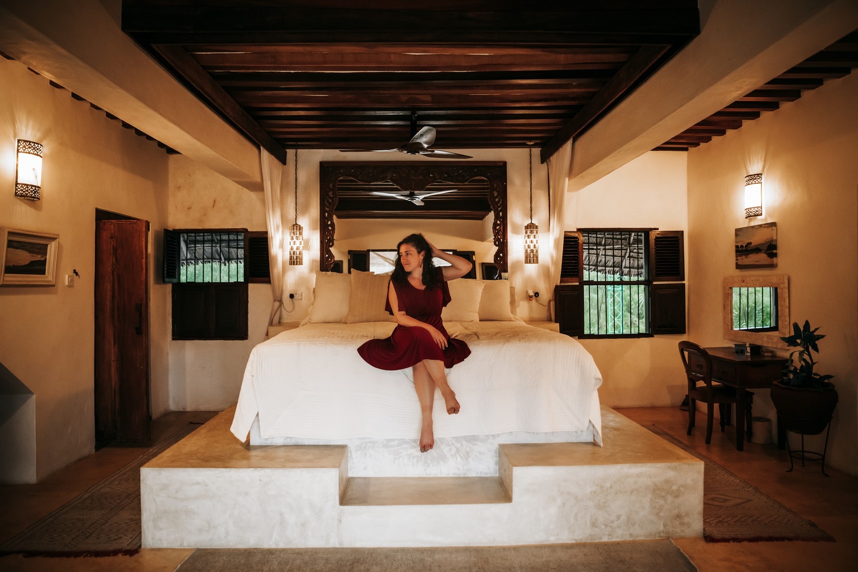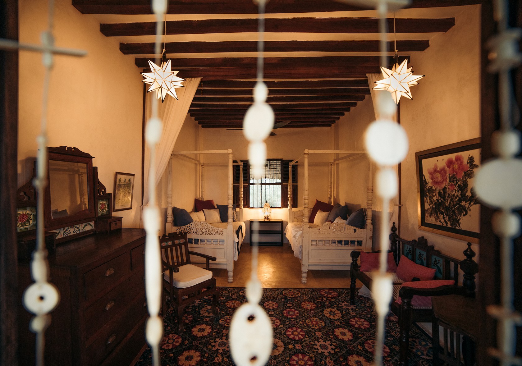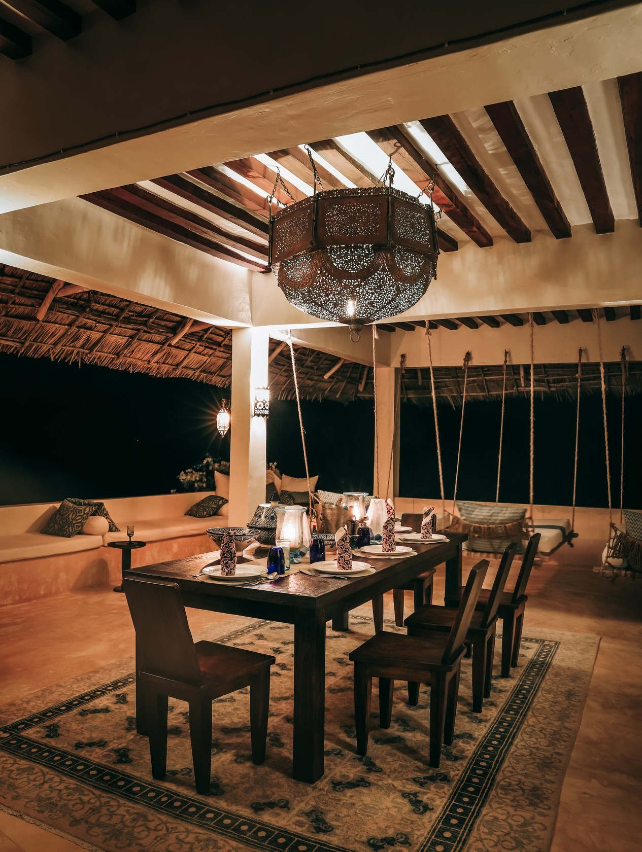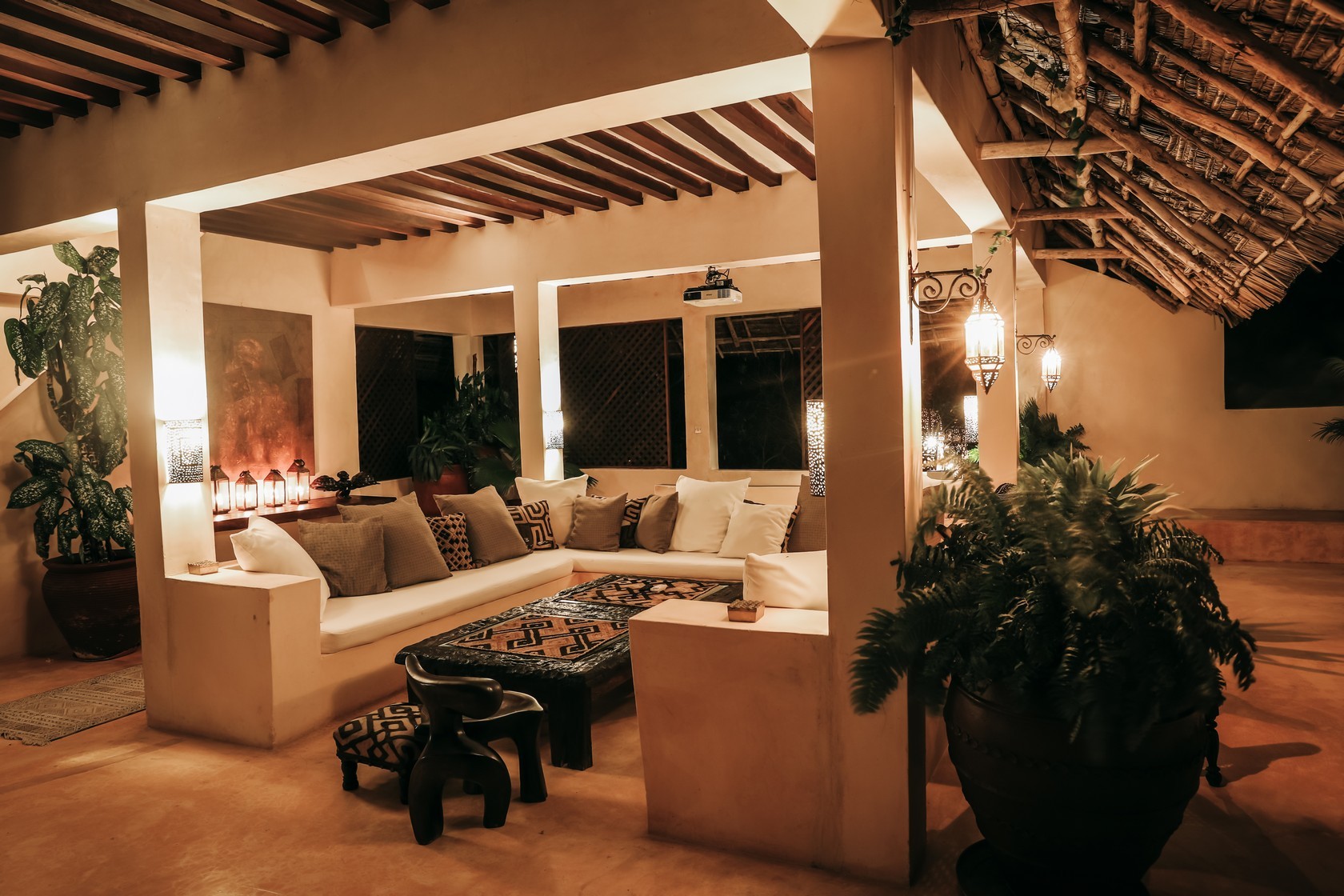 Dining at Kaskazi is an experience in itself. Local, hand-blown glass tableware and lavish, Eastern-inspired place settings. Your personal chef will whip up whatever your heart desires. Enjoy breakfast poolside, lunch in the cool shade of the trees on the beach, and dinner on the third-floor open terrace, gazing at the breathtaking tropical starlit sky. Kaskazi boasts five spacious bedrooms, each with a luxurious en-suite bathroom and a shaded terrace, plus two kids’ rooms with a large shared bathroom. The primary bedroom is an Eastern potentate’s fantasy: a bed the size of a football field, topped with a magnificent canopy; a sprawling terrace with ocean and pool views; and a cozy open-air bath.