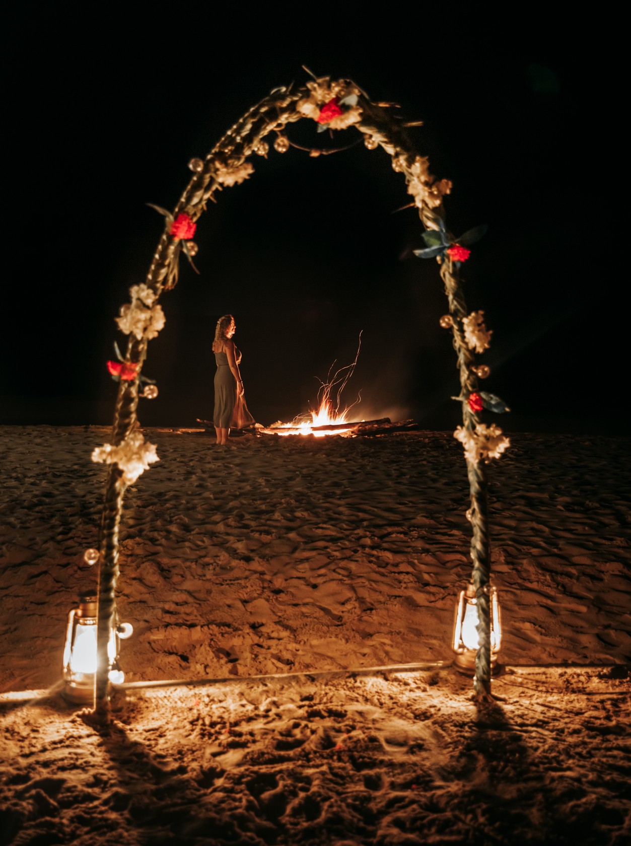 A lush garden envelops the house completely. Bougainvillea blooms, like vibrant, billowing clouds, sway in the breeze. The air is thick with smelling frangipani, and the fresh sea breeze rustles the carved palm leaves, whispering a soft melody.