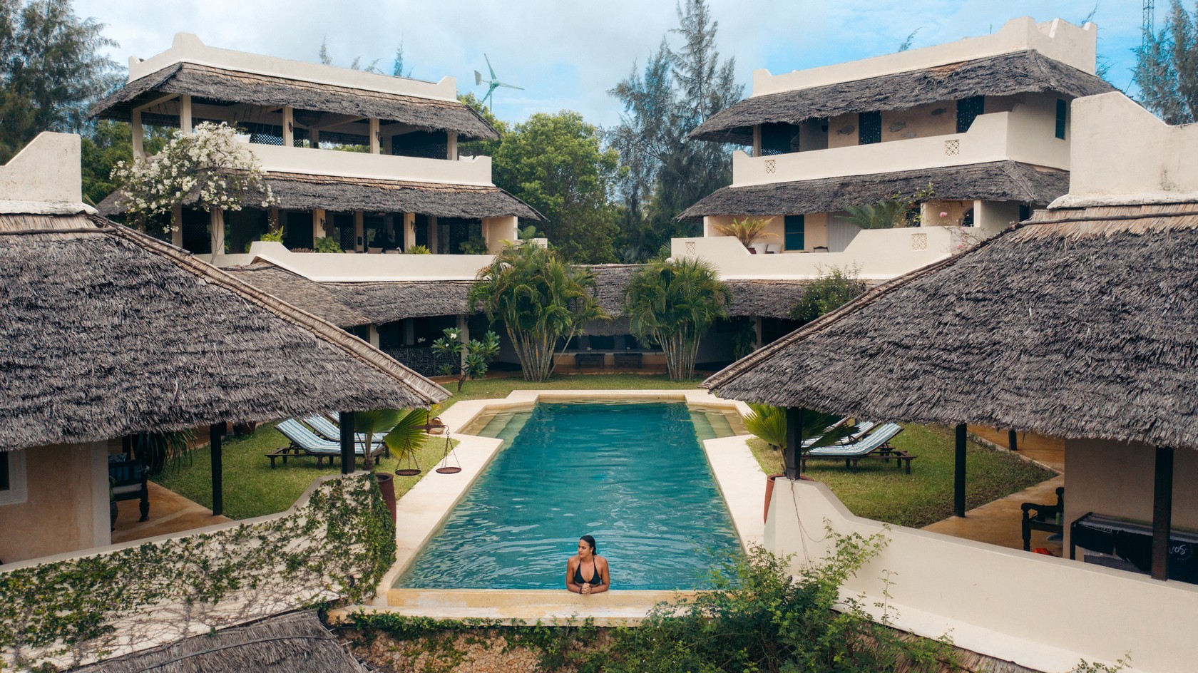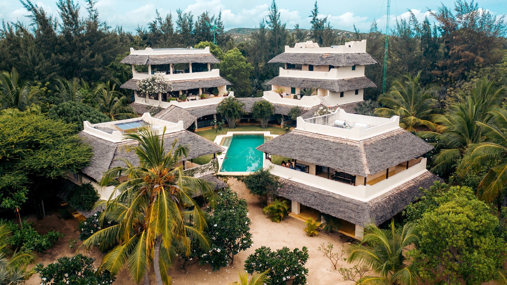 On Lamu Island, you’ll find Kaskazi House, a villa that’s the ultimate fantasy for a modern-day Robinson Crusoe. It blends the comforts of contemporary living with the enchanting allure tropical. A lush, extravagant garden surrounds the house. Bougainvillea blossoms, like vibrant, multicolored clouds, sway in the breeze. The sweet fragrance of frangipani fills the air, and the crisp sea breeze rustles the carved palm leaves. Four towers, connected by terraces, surround a stunning infinity pool. Five spacious bedrooms and two children’s rooms provide ample space. This design prioritizes pure relaxation and unwinding. Hammock loungers by the pool and on the beach, multiple cozy areas for socializing or playing board games, including one with a projector screen for movie nights. The equipped bar, billiards table, sun loungers, and massage room (including massage) meet every need.