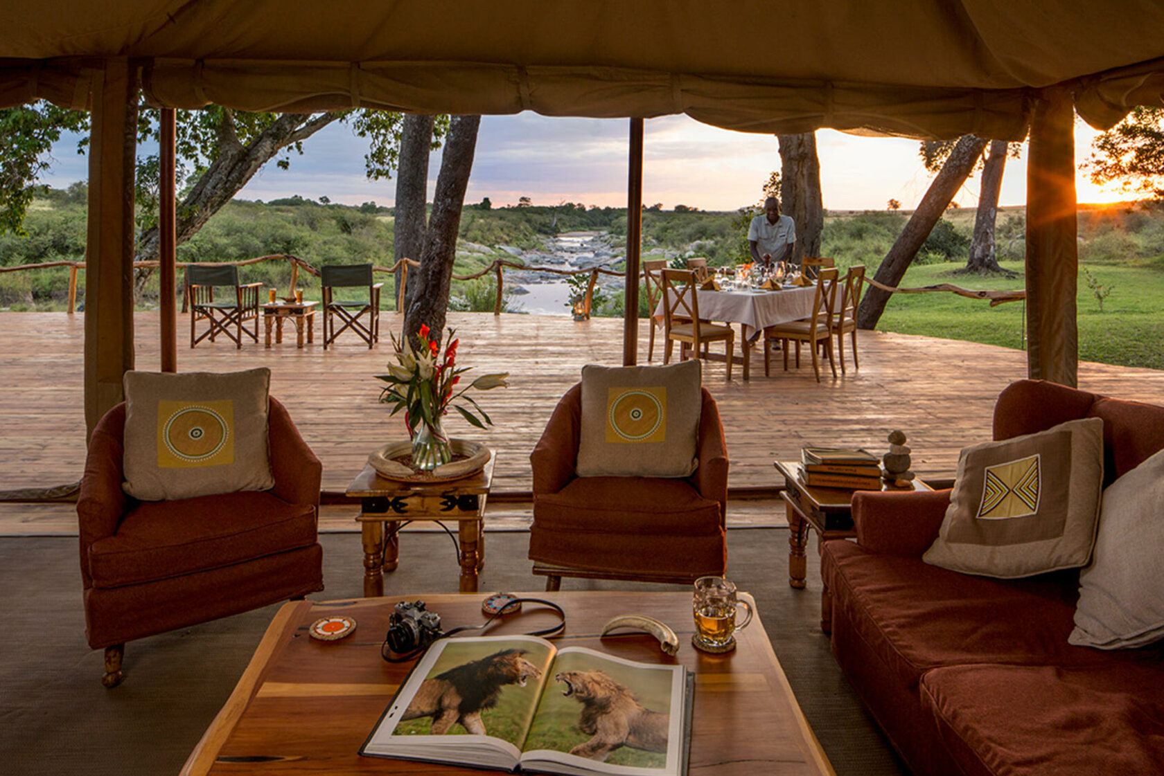 The veranda offers jaw-dropping views of the surrounding landscape. And there’s plenty to see: the camp is a mere 50 yards from one of the Great Migration’s most pivotal points – the Talek River. Twice a year, herds of wildebeest and zebra, numbering in the millions, cross this very river. You can witness this majestic and mesmerizing spectacle from the comfort of your veranda, or even from your tent.
