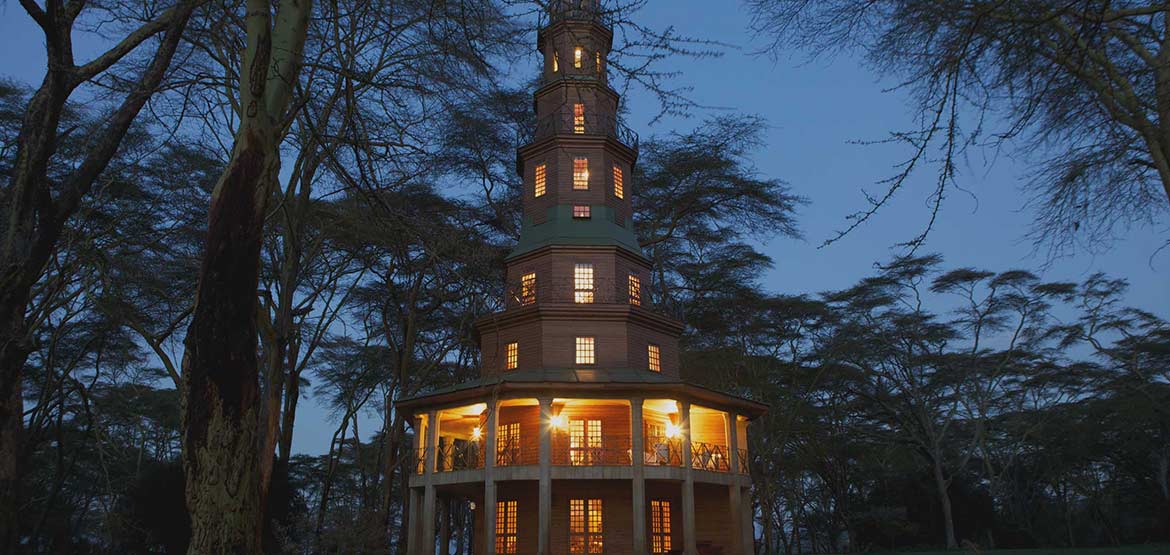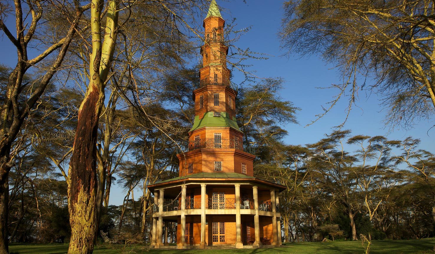 Cypress-clad and soaring 120 feet into the sky, the pagoda, a recent addition, punctuates the landscape of vibrant yellow trees at Hippo Point estate, whose main house dates back to 1933. Nestled in the East African Rift Valley, on a slender isthmus between Lakes Naivasha and Oloidien – where you’re all but guaranteed to share the water with hippos – this place is best approached by helicopter for truly unforgettable aerial views.