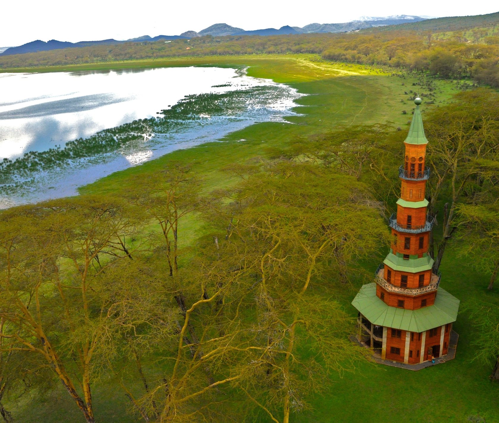 The eight-story Dodo’s Tower, hailed as one of Kenya’s unique lodges, opens its doors to a select few throughout the year. This 120-foot cypress-clad tower stands tall amidst vibrant yellow acacias, its base a haven of peace and tranquility, broken only by birdsong and the gentle splash of hippos venturing ashore under the cloak of night. Every window frames breathtaking views of Lakes Naivasha and Oloidien, between which the tower lives, and the grazing herds of wildlife—some 1,200 animals roaming without fences. Dodo’s Tower, built in Tudor style, features a dining room and summer kitchen where chefs craft dishes from fresh produce straight from the private garden.