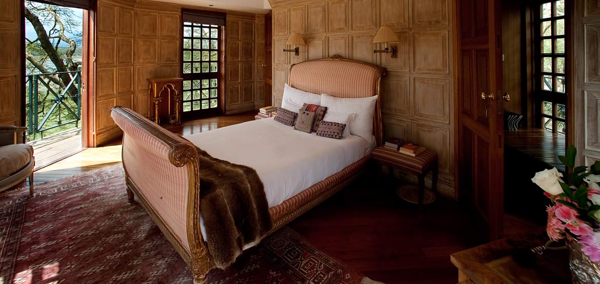 Built in 1933, Hippo Point Mansion sits on a narrow isthmus between the western shore of Lake Naivasha and Lake Oloyedean. Hippo Point is a private reserve where zebras, giraffes, hippos, warthogs, water goats, impalas, Thomson’s gazelles, leopards and black and white colobus, a rare species of beautiful monkeys also called “king monkeys” roam freely. The house is built in Elizabethan style: turn-of-the-century English and French furniture; spacious rooms with lake and garden views; fireplaces and wooden floors; two dining rooms, one of which is al fresco; a library with a selection of African literature; and a 25-meter swimming pool close to the house. Take a boat ride on the lake surrounded by pristine nature and don’t forget to have a traditional African drink at sunset.