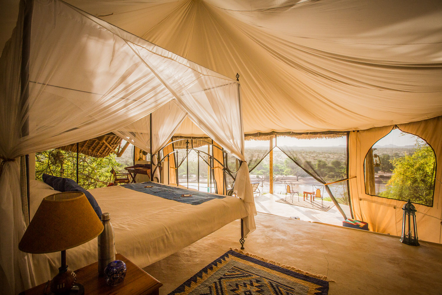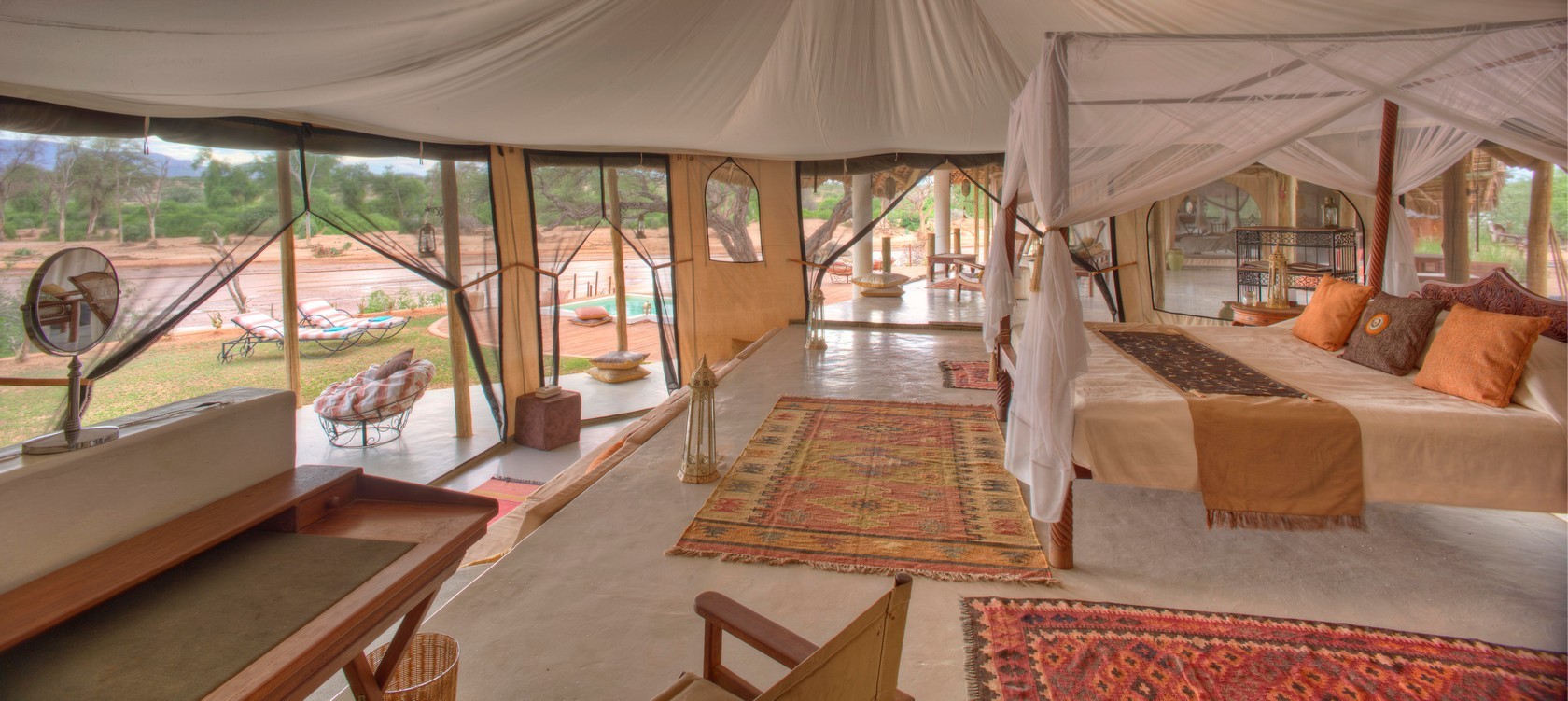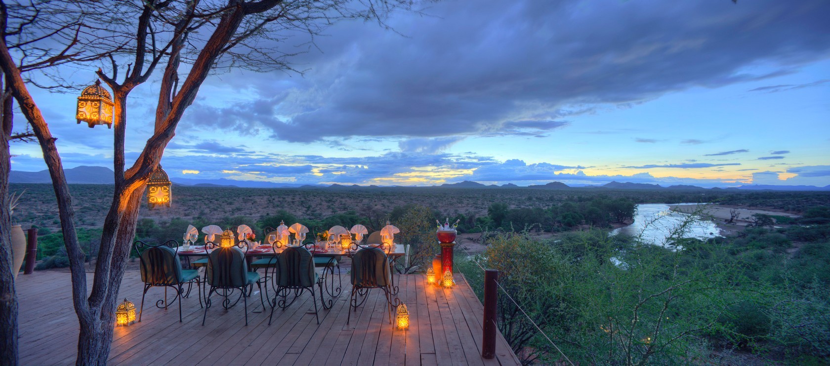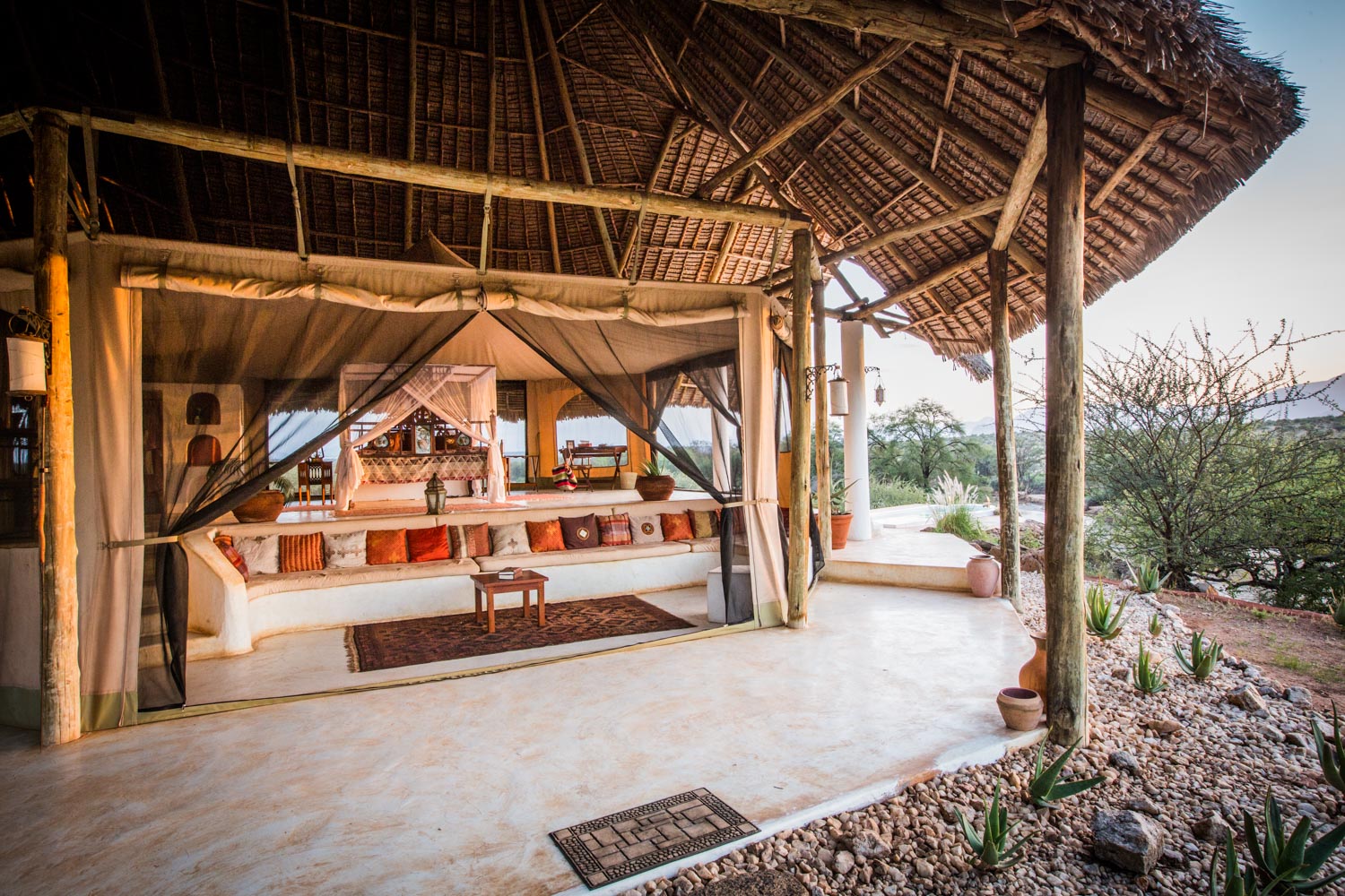 Nestled along the banks of the Ewaso Nyiro River, within the private Westgate Conservancy and bordering Samburu National Park, you’ll find the opulent Sasaab lodge. Each of its nine suites boasts a unique, Moroccan-inspired design. Every suite also features a private, open-air veranda with its own plunge pool. And let me tell you, the views of the Laikipia Plateau and elephants making their way down to the watering hole are breathtaking.