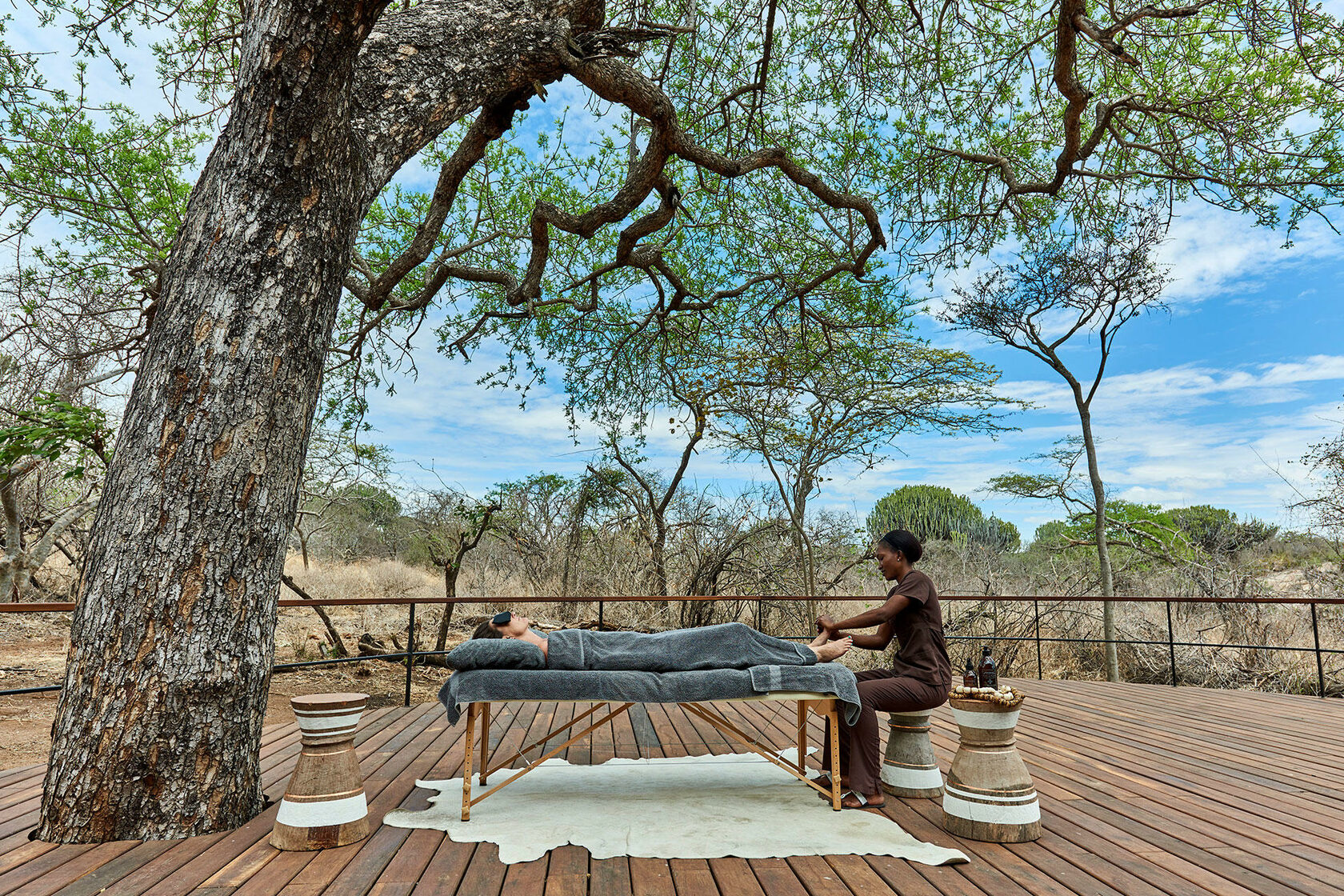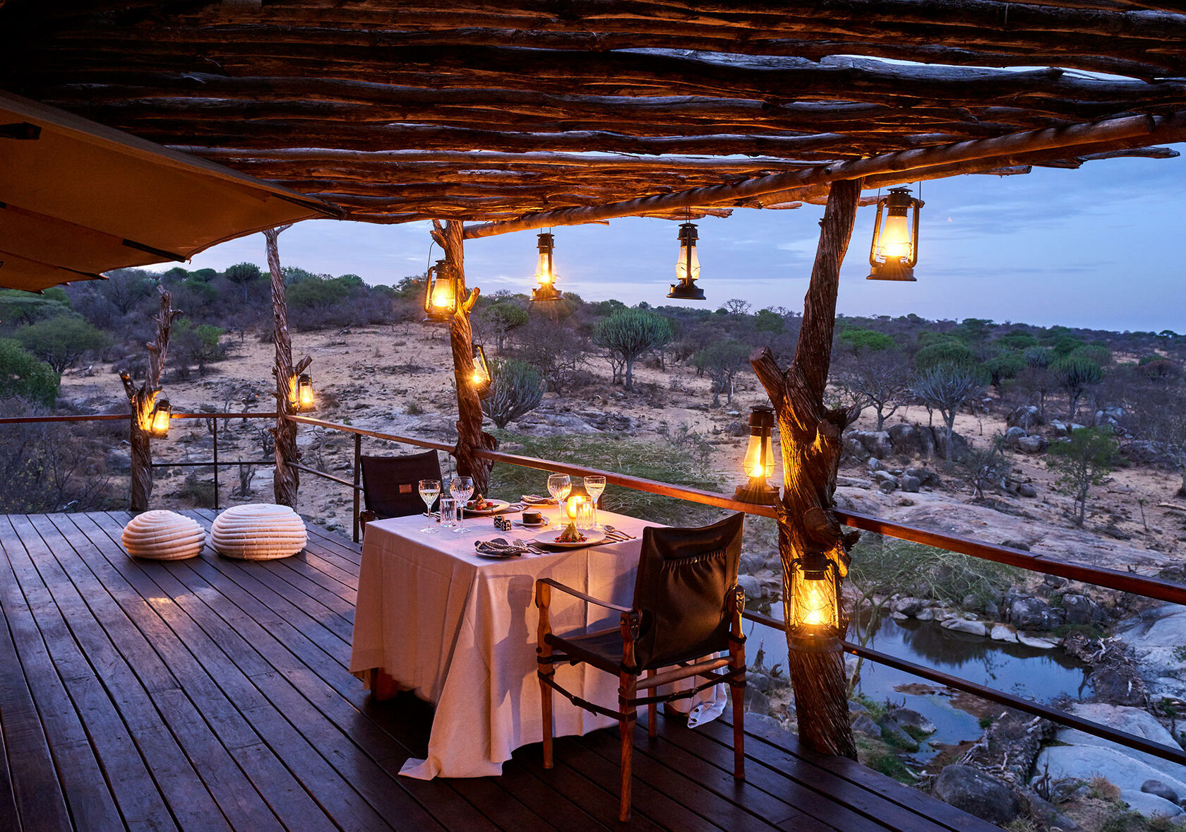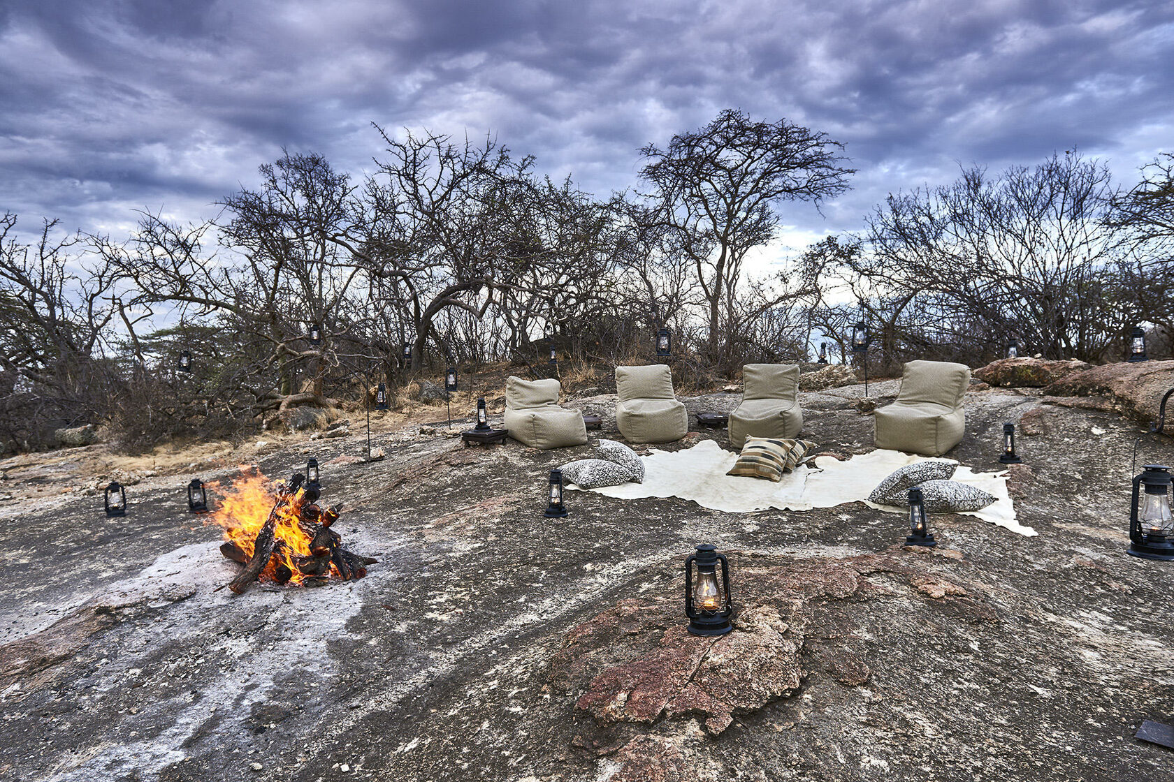 A sprawling infinity pool perches on a rocky outcrop, providing a bird’s-eye view of animals making their way to the watering hole below. If you’re lucky, you might witness a lion ambushing a zebra or antelope. For those who prefer to soak in the spectacle solo, each suite features a private terrace.