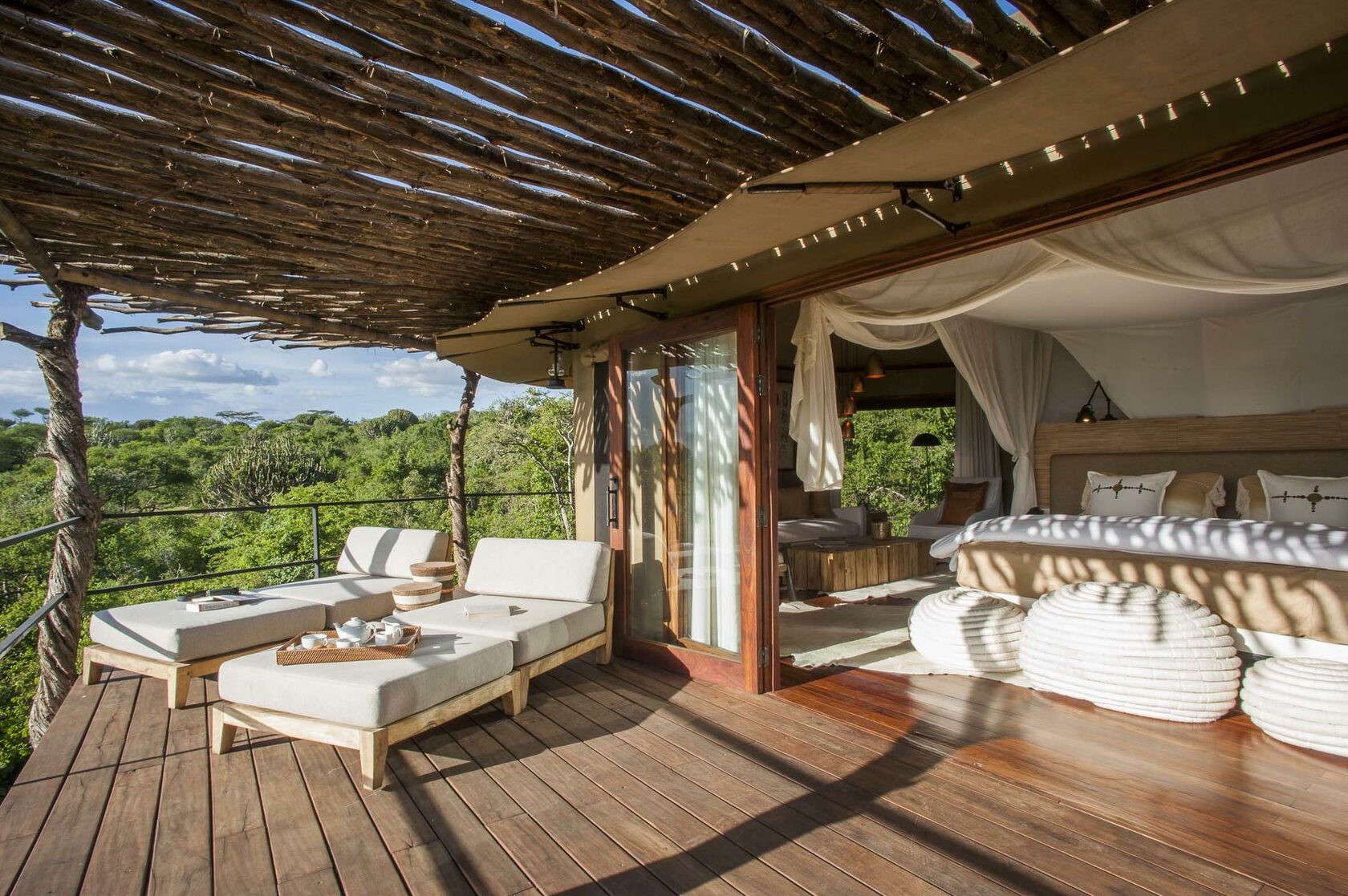 On one of the slopes of the Rift Valley lurks Mwiba Lodge, a private reserve of approximately 50,000 hectares. The nature here is unspoiled and majestic. The ten suites leave you feeling spacious, airy and cozy. Large, bright rooms finished in wood, genuine leather and cashmere, huge baths and outdoor showers. Add to that superb cuisine and a private car with a guide driver, spa and gym, helicopter tours and night safaris (except day safaris), and powerful Wi-Fi.