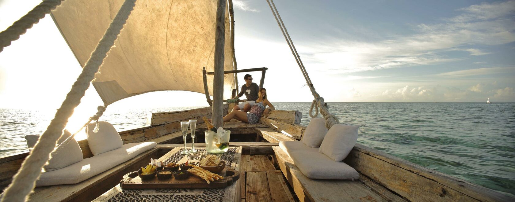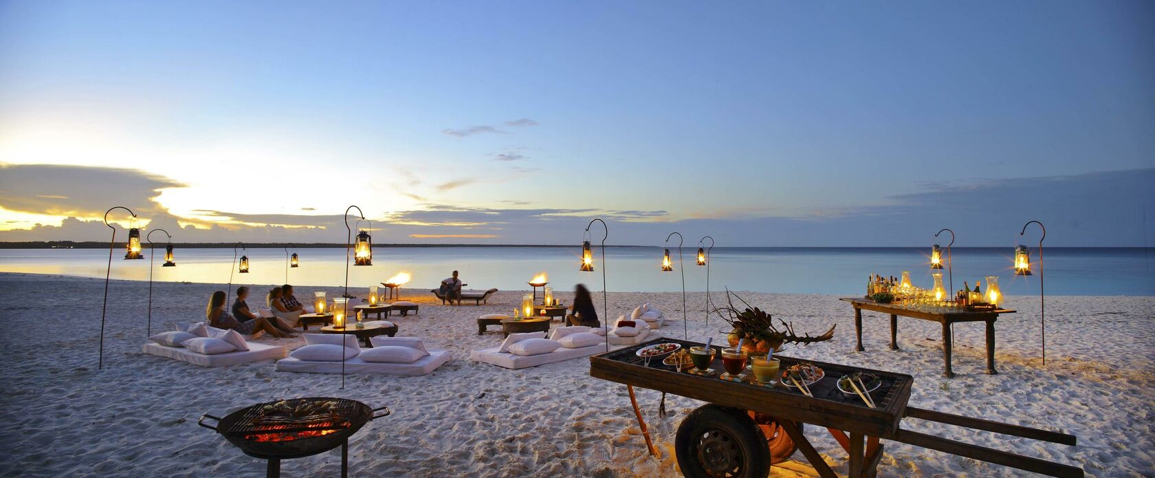 Lazy brunches of tropical fruit, fresh-squeezed juice, and Tanzanian coffee can be delivered right to your beach banda for those who can’t tear themselves away from the Indian Ocean. And come evening, indulge in a romantic candlelit dinner: a lavish spread of fresh sushi and chilled champagne, under a canopy of stars with the gentle lapping of waves at your feet. Follow it up with a traditional massage and the tranquil solitude of an African night…