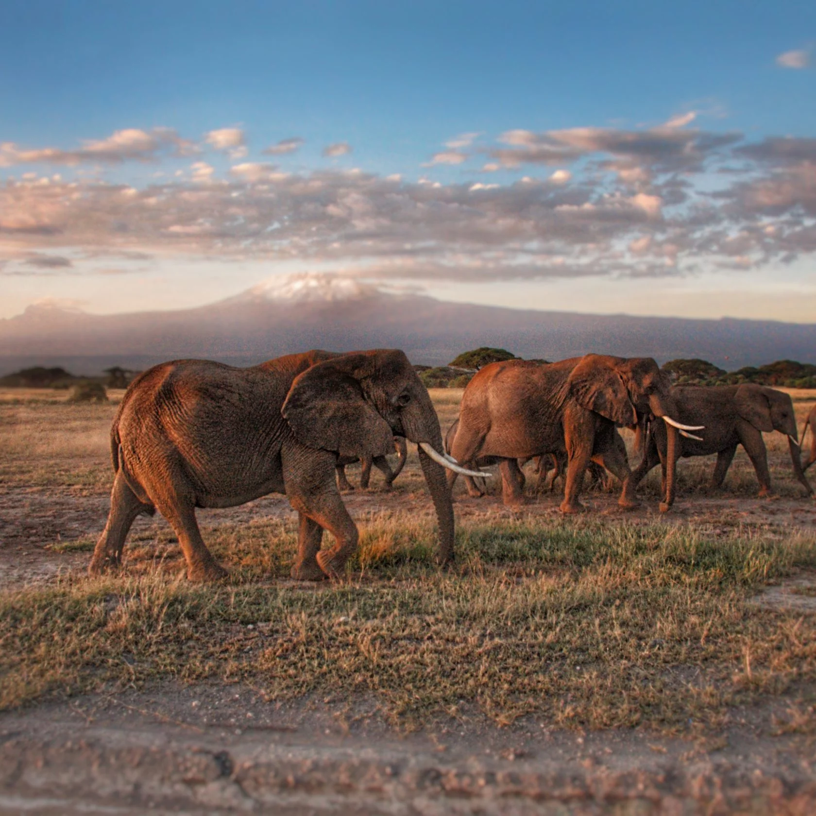 слоны на фоне Килиманджаро