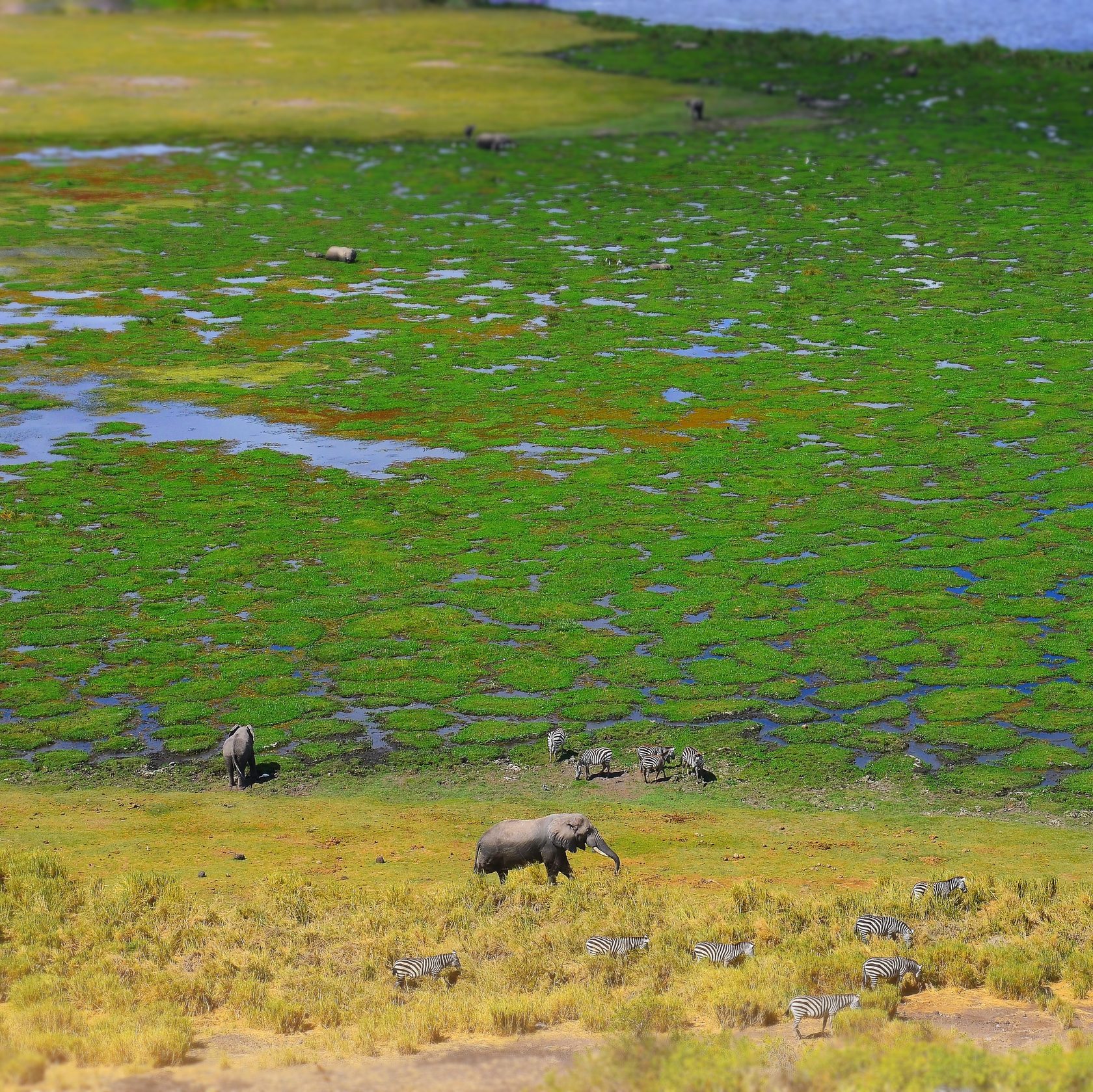 Откуда вода в Амбосели? Воду здесь обеспечивают тающие снега Килиманджаро, они образуют ручейки, которые стекают на равнину и создают достаточное количество влаги. По сути, уникальный ландшафт Амбосели сформирован северо-восточным склоном красавицы Килиманджаро и ее вулканическим пеплом. Отсюда и название парка – Амбосели, которое можно перевести на русский как «Соленая пыль».
